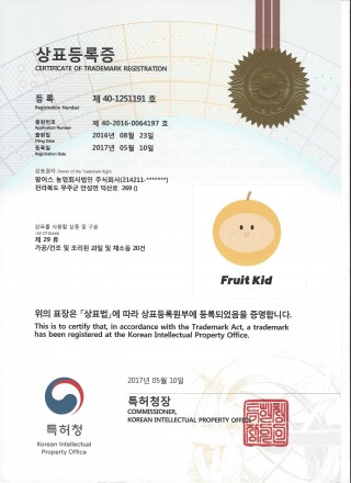 Fruit Kid 배 상표등록증
