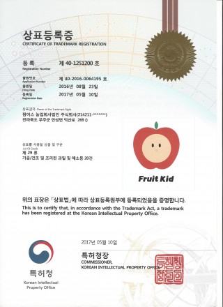 Fruit Kid 사과 상표등록증